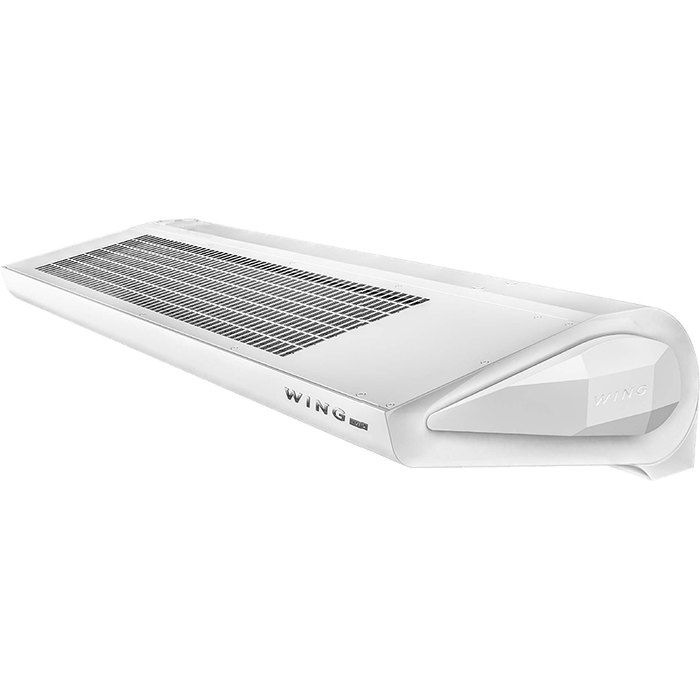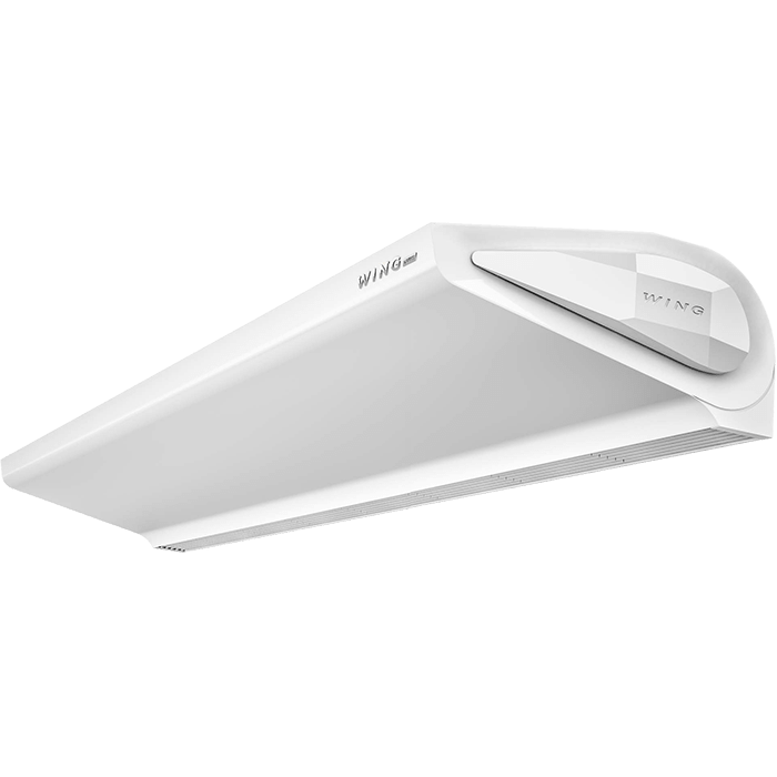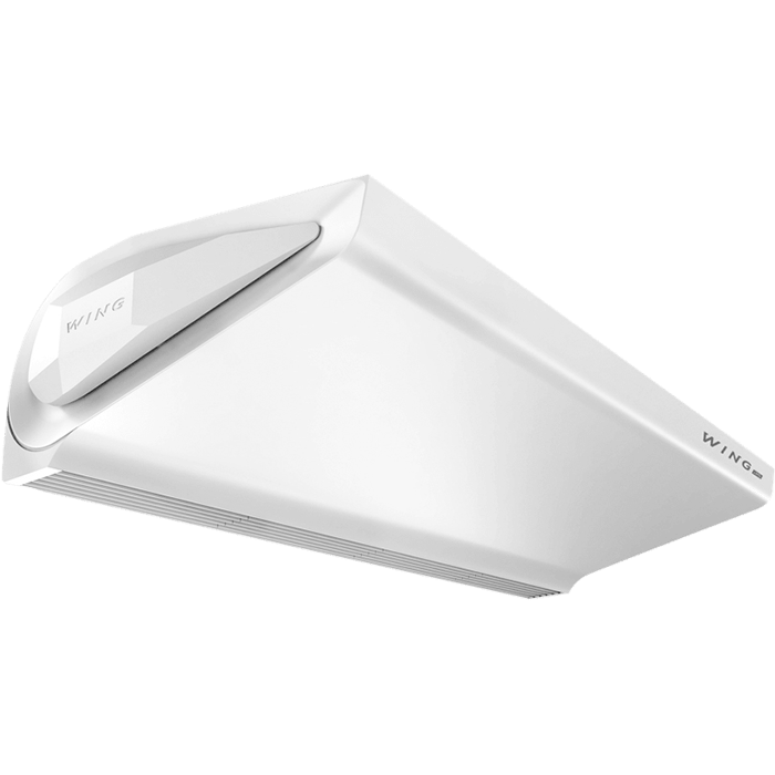 Воздушные завесы WING (водяные, без нагрева) могут работать, как в в горизонтальной, так и в вертикальной позициях. Завесы WING c электрическим нагревателем разрешено монтировать и эксплуатировать только в горизонтальном положении. Благодаря конструкции, небольшой высоте корпуса, а также возможности забора воздуха под наклоном, завесы можно устанавливать в ограниченном пространстве над дверными проемами, и такой способ не повлияет на эффективность.